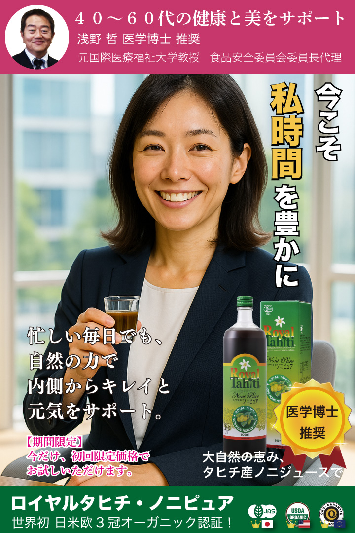 健康雑誌「からだにいいこと」(2020年7月号)で、ロイヤルタヒチ・ノニピュアが